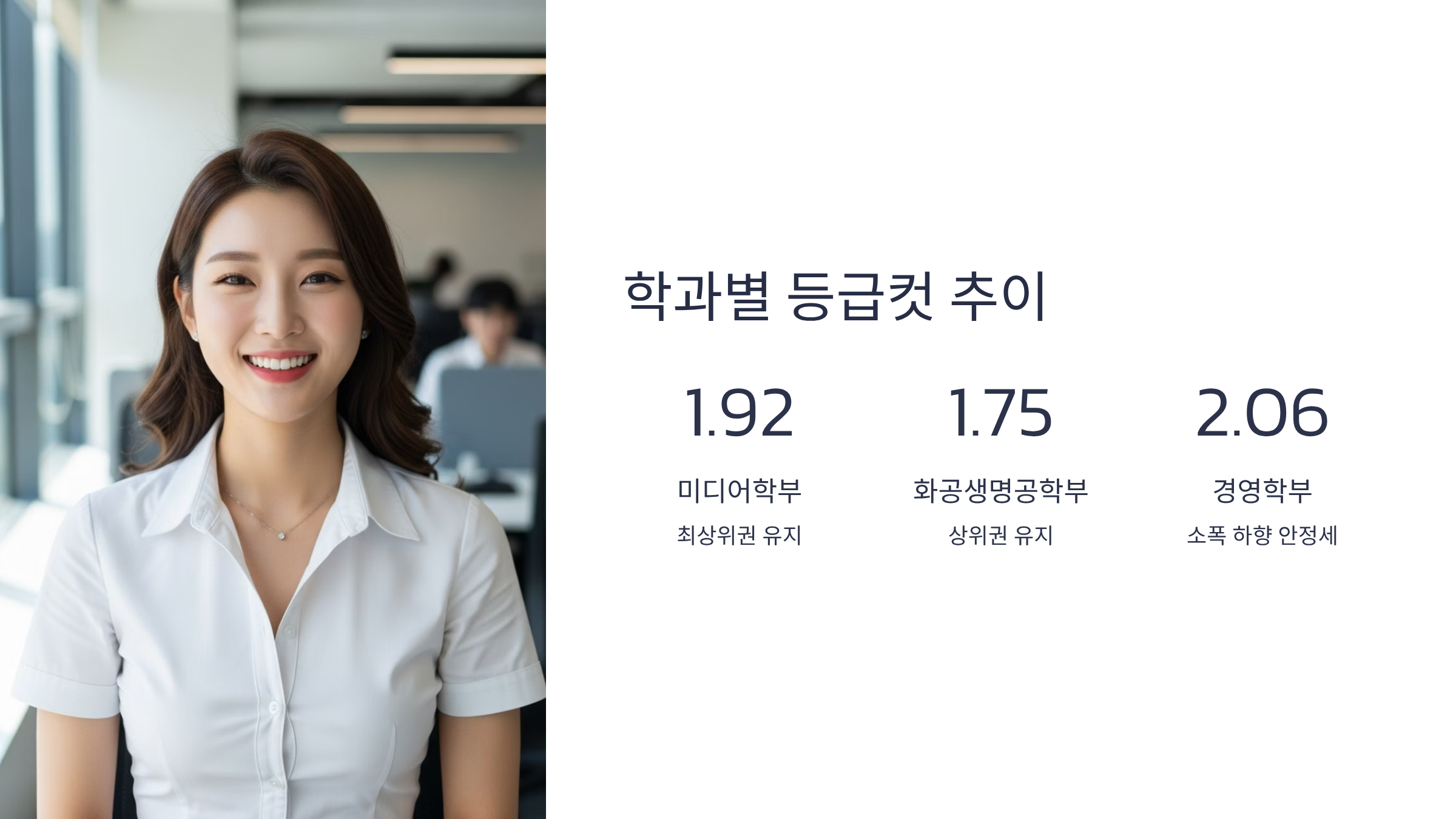 | 미디어학부 | 1.71 | 1.92 | 1.8 ~ 1.9 | 최상위권 유지 |