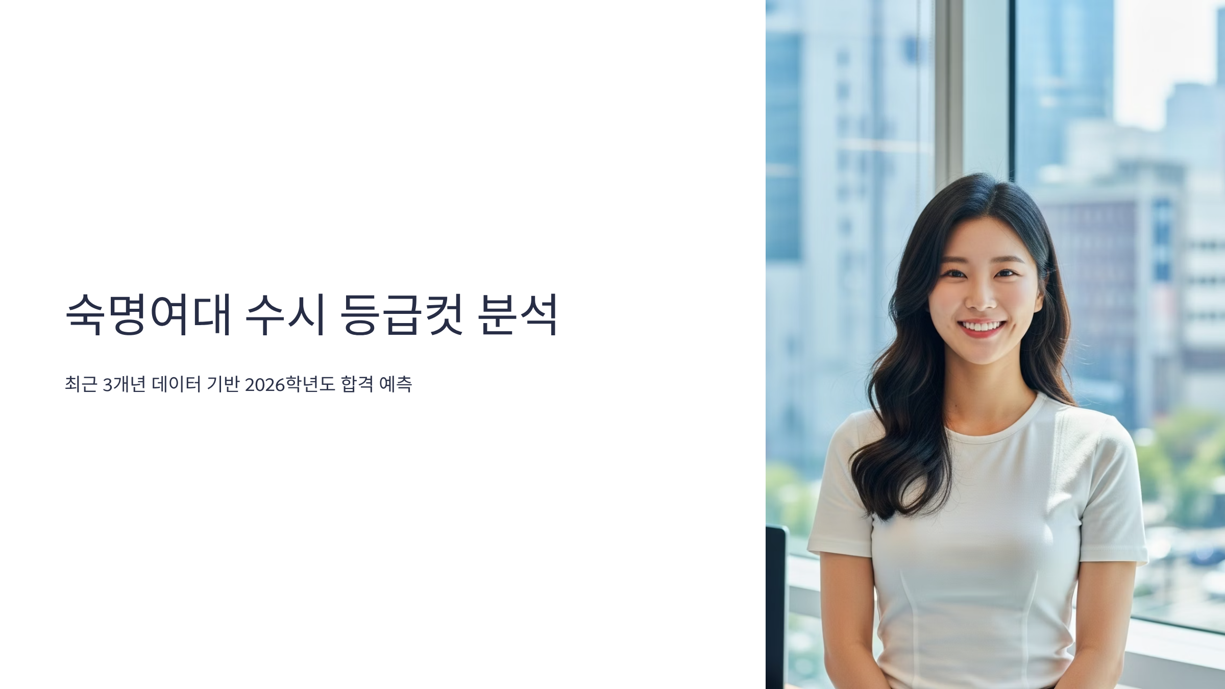 2026학년도 숙명여대 수시모집은 몇 가지 중요한 변화를 예고하고 있어, 이는 숙명여대 수시 등급컷에도 상당한 영향을 미칠 것으로 보입니다. 입시 전문가는 이러한 변화의 핵심을 정확히 파악하고 선제적으로 대응 전략을 세워야 합니다.