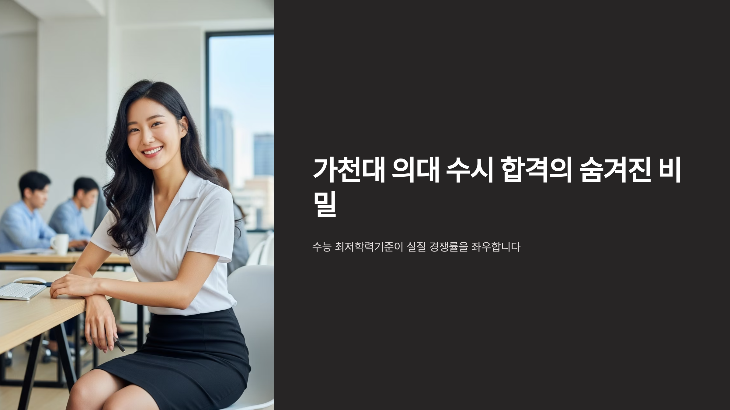 가천대 의대 수시의 내신 합격컷을 논하기에 앞서, 우리는 반드시 '실질 경쟁률'이라는 개념을 이해해야 합니다. 대부분의 의대 수시 전형에는 수능 최저학력기준이 존재하며, 이는 서류 평가나 면접 평가 이전에 지원자가 통과해야 하는 1차 관문과도 같습니다. 특히 가천대 의대가 요구하는 국어, 수학(미적분/기하), 영어, 과학탐구(2과목 평균) 중 3개 영역 각 1등급이라는 수능 최저학력기준은 전국 의대 중에서도 가장 높은 수준에 속합니다.