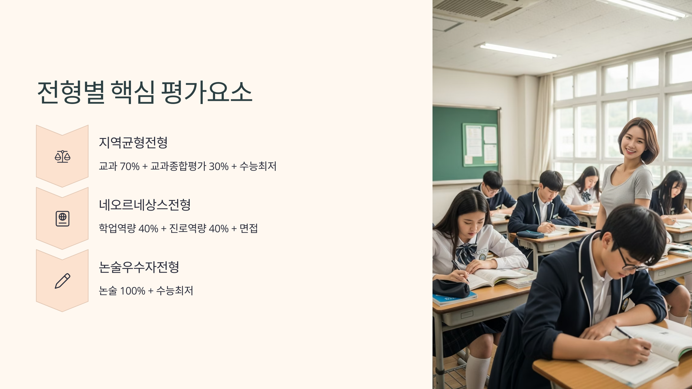 - 소신 지원의 중요성: 자신의 내신 성적과 함께, 변경된 기준의 수능최저를 안정적으로 충족할 수 있는지 냉정하게 판단하여 소신 지원하는 전략이 그 어느 때보다 중요해졌습니다.