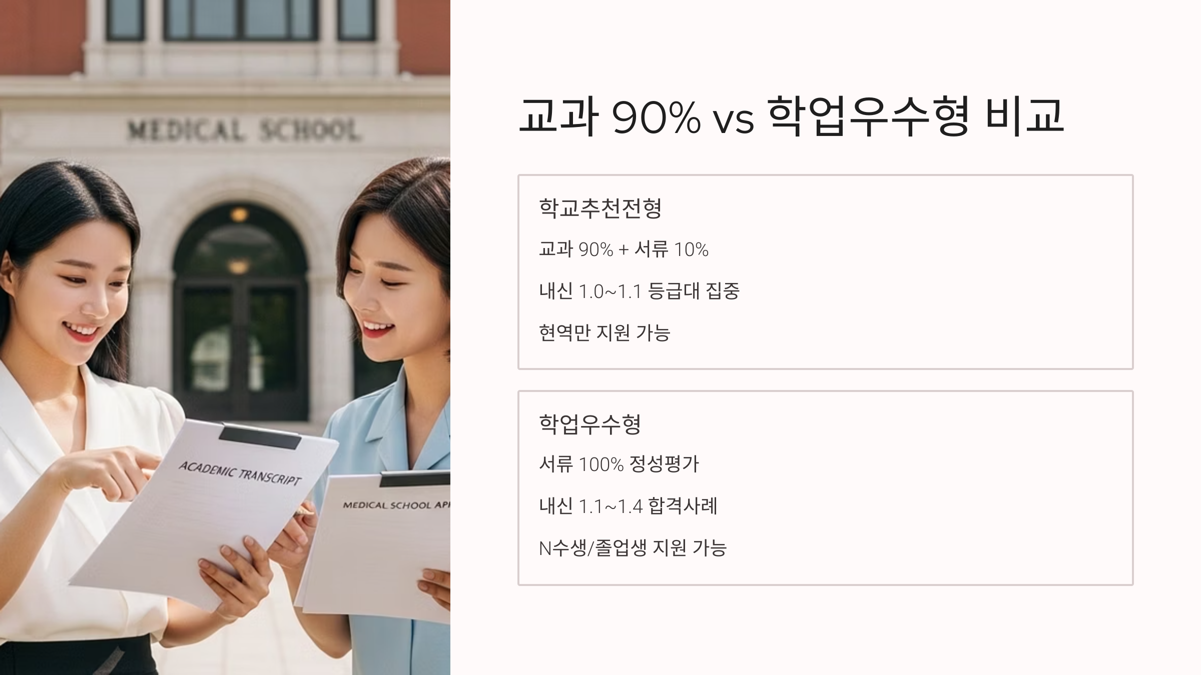 | 구분 | 학교추천전형 (교과 90%) | 학업우수형 (서류 100%) |