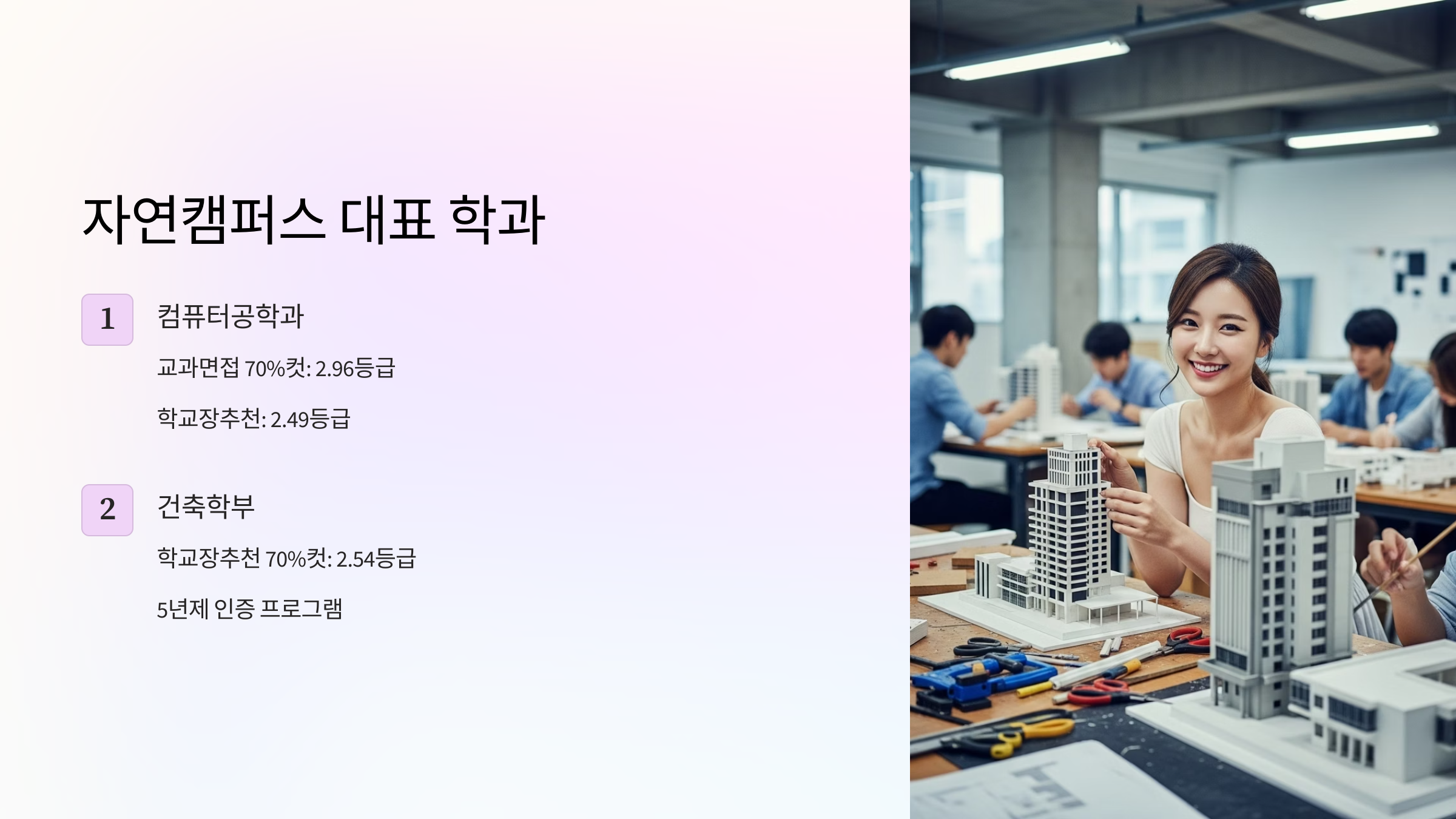 자연캠퍼스(용인) 대표 학과: 컴퓨터공학과, 건축학부 등급컷 정밀 추적