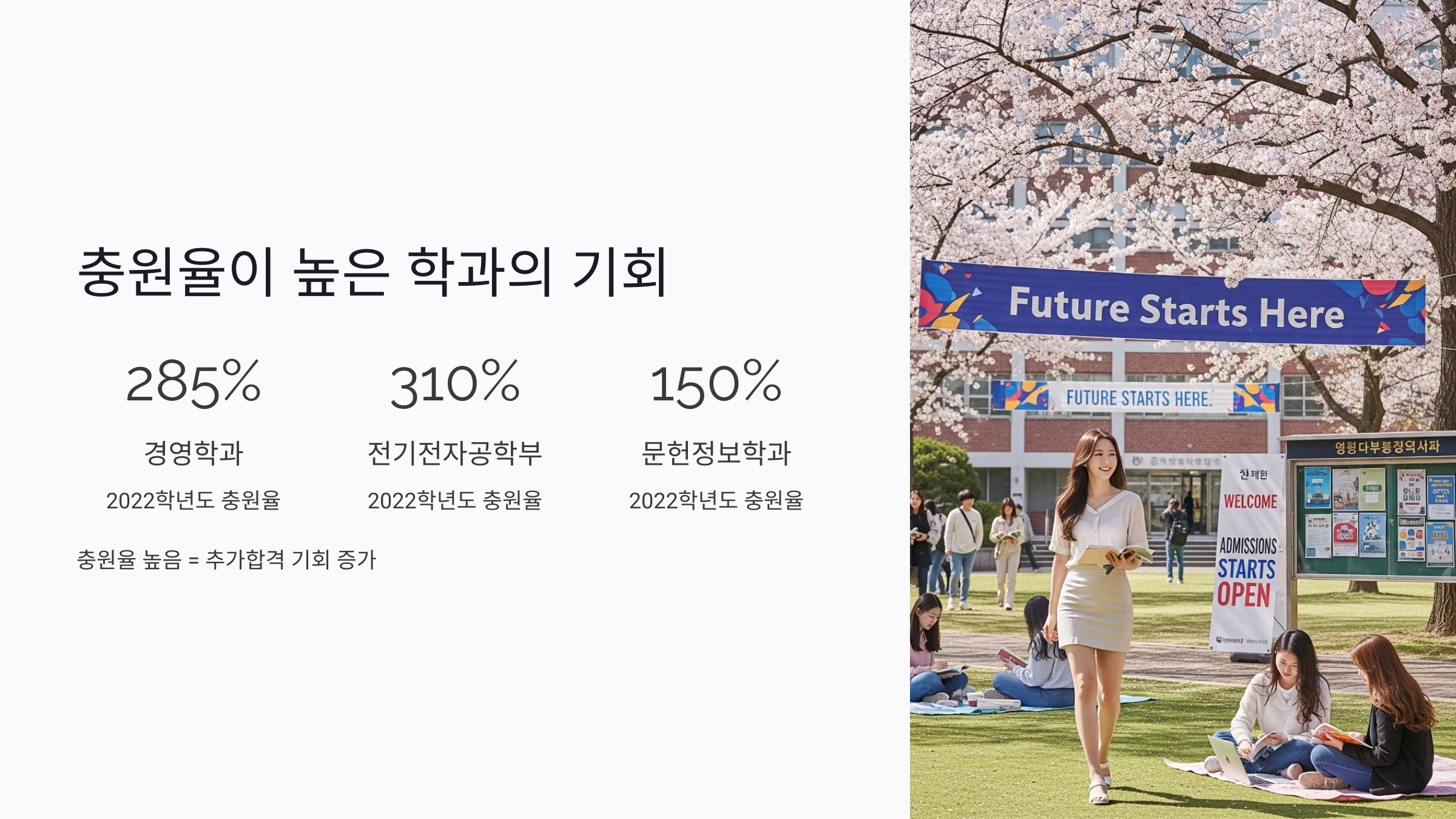 위험을 감수하고 기회를 잡으려는 수험생이라면 아래와 같은 특징을 보이는 학과를 주목할 필요가 있습니다. 물론 이는 확률적인 예측일 뿐 100%를 보장하지는 않지만, 정보의 우위를 통해 합격 가능성을 높이는 전략적 선택이 될 수 있습니다.