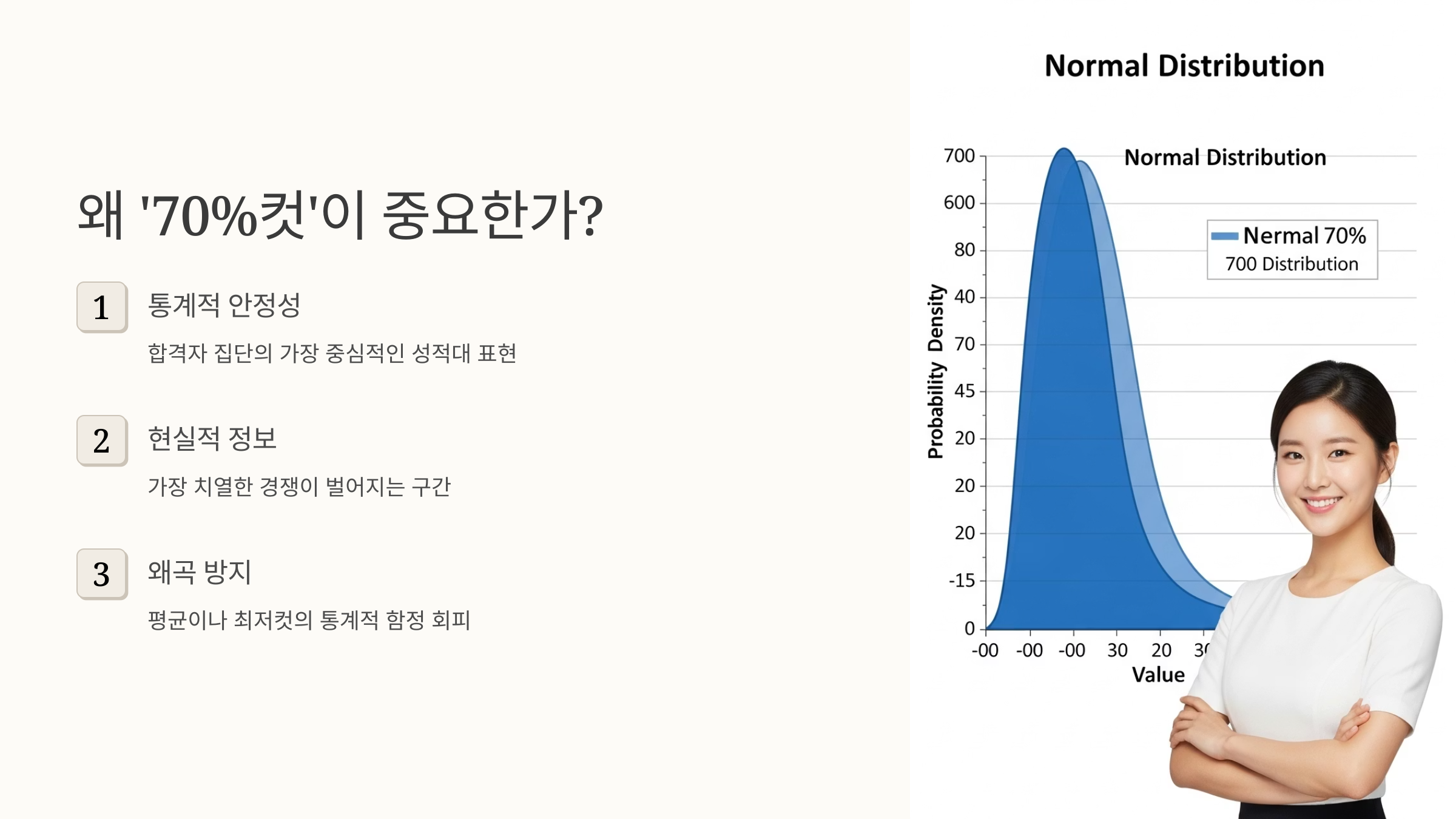 대학 입학처가 합격자 '평균 등급'이나 '최저 합격 등급(커트라인)' 대신 '70%컷'을 공식 입시 결과로 발표하는 데에는 명확한 이유가 있습니다. 이는 통계 데이터의 함정을 피하고 수험생에게 가장 안정적이고 신뢰도 높은 참고자료를 제공하기 위함입니다.