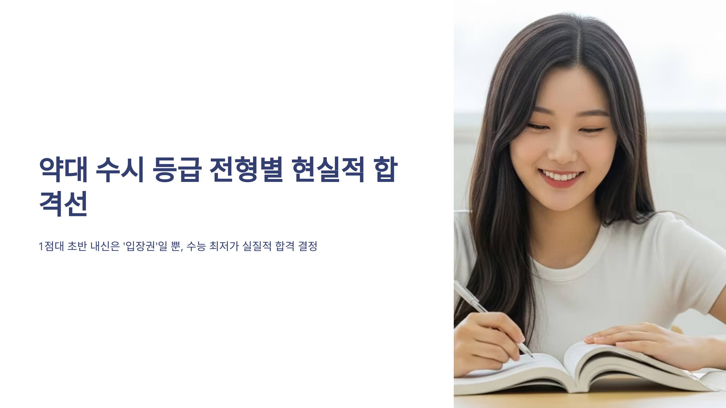 약대 수시 등급 전형별 현실적 합격선: 내신 약점을 극복하는 논술 및 지역인재전형 공략법은 1점대 초반의 극상위권 내신을 확보하지 못했거나, 비교과 활동이 다소 부족한 수험생들에게 약대 합격의 새로운 희망이 될 수 있는 두 가지 전형을 집중적으로 분석합니다. 이 글은 논술전형과 지역인재전형의 특징과 실제 합격 데이터를 기반으로, 자신의 약점을 보완하고 강점을 극대화하여 합격 가능성을 높일 수 있는 구체적이고 현실적인 전략을 제시하는 데 그 목적이 있습니다.