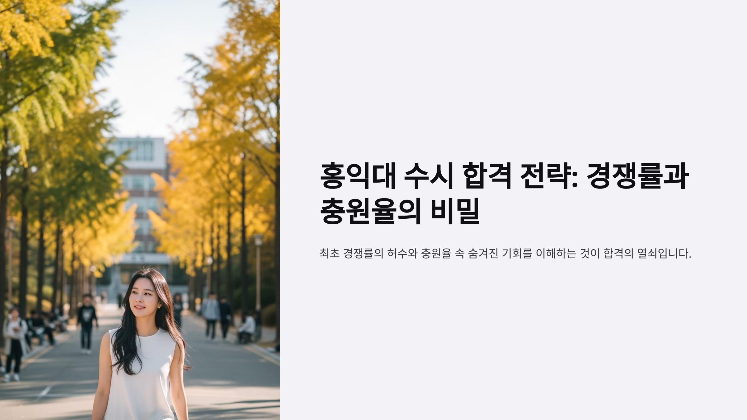수시 원서 접수 시즌이 되면 수많은 기사와 커뮤니티에서 '역대 최고 경쟁률'이라는 자극적인 제목을 보게 됩니다. 하지만 입시 전문가는 최초 경쟁률에 일희일비하지 않습니다. 그 숫자에는 수능 최저학력기준을 충족하지 못할 지원자, 즉 '허수 지원자'가 대거 포함되어 있기 때문입니다. 홍익대처럼 수능 최저 기준이 명확한 대학의 경우, 이 허수를 걷어낸 '실질 경쟁률'을 파악하는 것이 무엇보다 중요합니다.